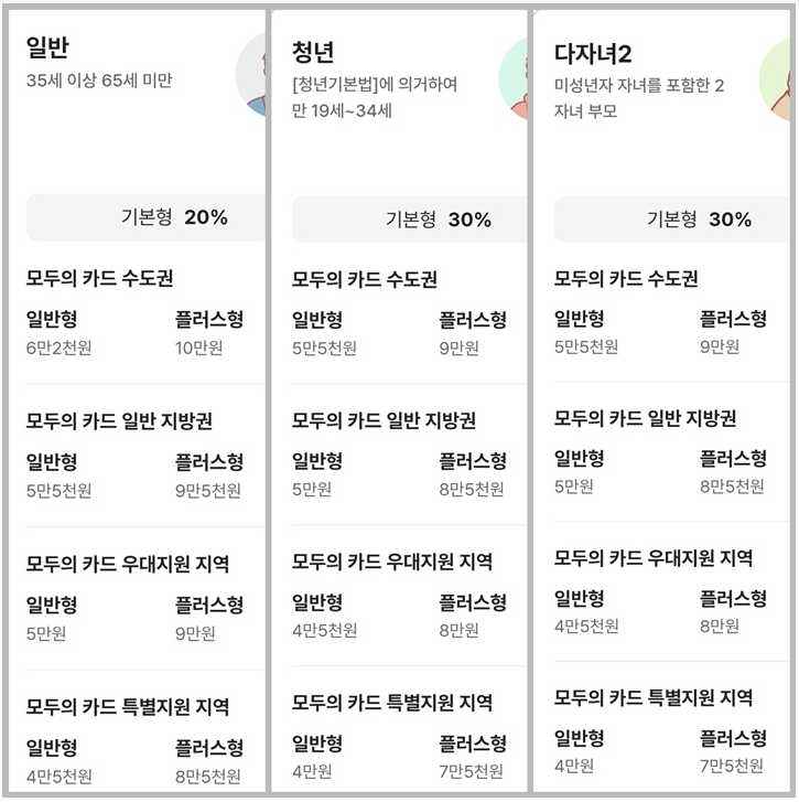 | 모두의 카드 플러스형 | 기준금액 초과분 전액 환급 | 일반 + GTX 등 고가 교통 포함 | 장거리 통근자, GTX 이용자에게 유리 |