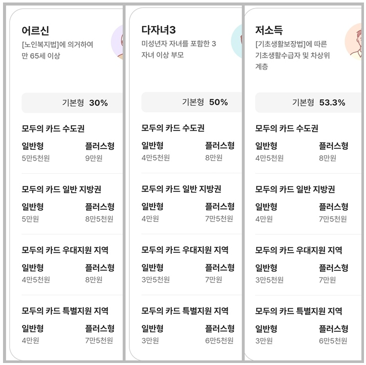 ‘모두의 카드’는 크게 세 가지 유형의 환급 방식으로 나뉩니다.