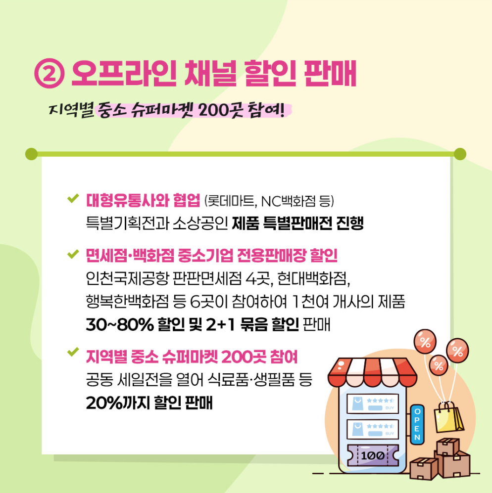 - 전국 대형 유통업체, 온라인 쇼핑몰, 전통시장, 지역 특산물 판매점 등이 참여