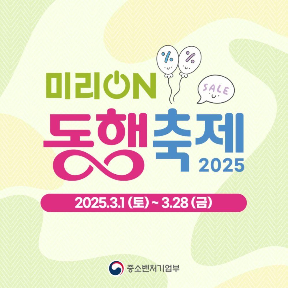 이번 미리 온(ON) 동행축제는 5월 동행축제에 앞서 열리는 온라인 중심의 소비촉진 행사입니다. 3월 28일까지 개최되는데요. 내수 부진이 장기화되면서 지난해에 이어 올해도 중소기업, 소상공인 제품 할인행사를 통해 내수 회복의 마중물이 되고자 기획되었다고 합니다. 소비자들을 위해 다양한 할인과 프로모션이 마련되어 있는데요. 지금부터 주요 혜택을 살펴보겠습니다.