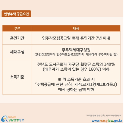 신혼부부 > 주거지원 > 주택구입지원 > 신혼부부 특별공급 (본문) | 찾기쉬운 생활법령정보