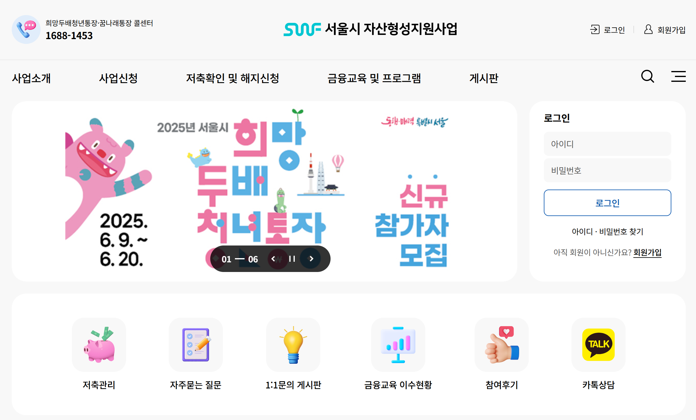 📞 문의 콜센터: 1688-1453 (희망두배청년통장·꿈나래통장 총괄)